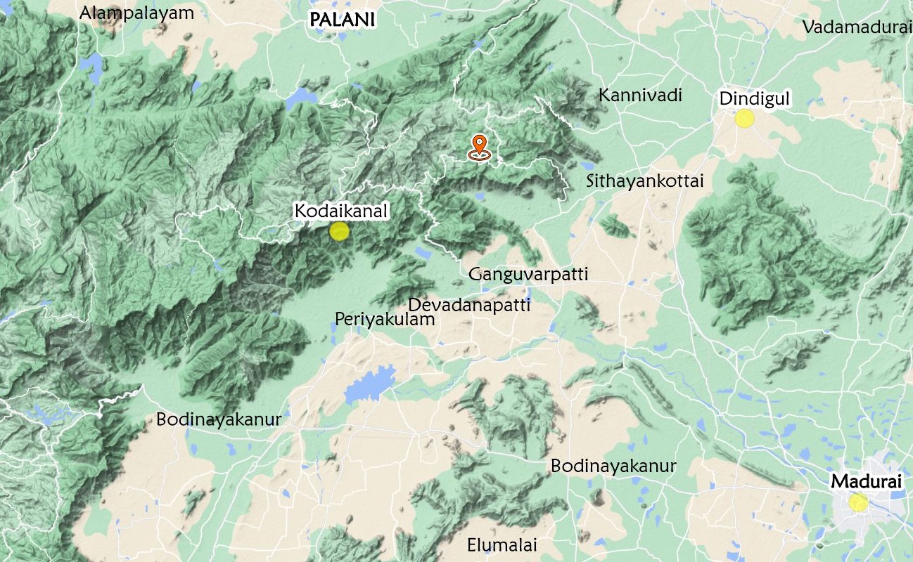 Dindigul – take Vathalagundu /Theni road – Sempatti – Turn right to Palani road – 1km – turn left to Athoor – drive through – Athoor – Sithiyankottai – to Chitharevu – turn right to the hill road – 14 km to Manjelparappu – turn left in Manjelparappu – we will meet you in village